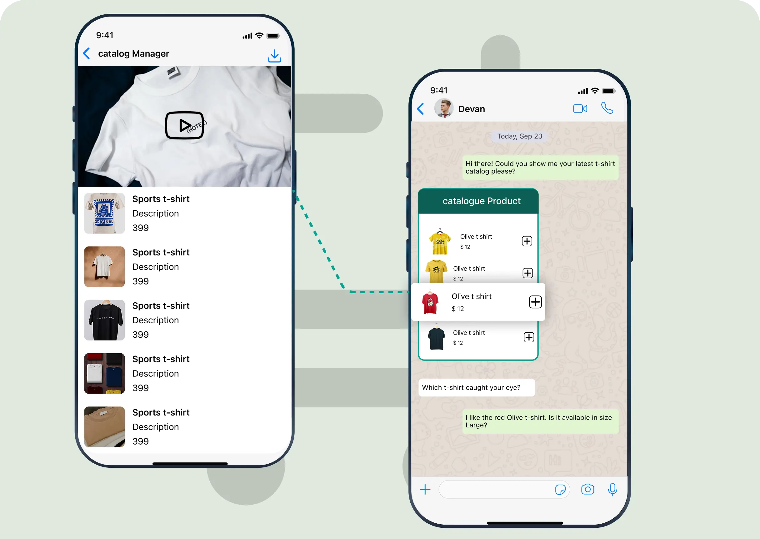 Showcase your entire product catalog directly within WhatsApp for e‑commerce. Let shoppers browse, ask questions, view images, and receive up-to-date pricing—all without needing to leave the conversation.