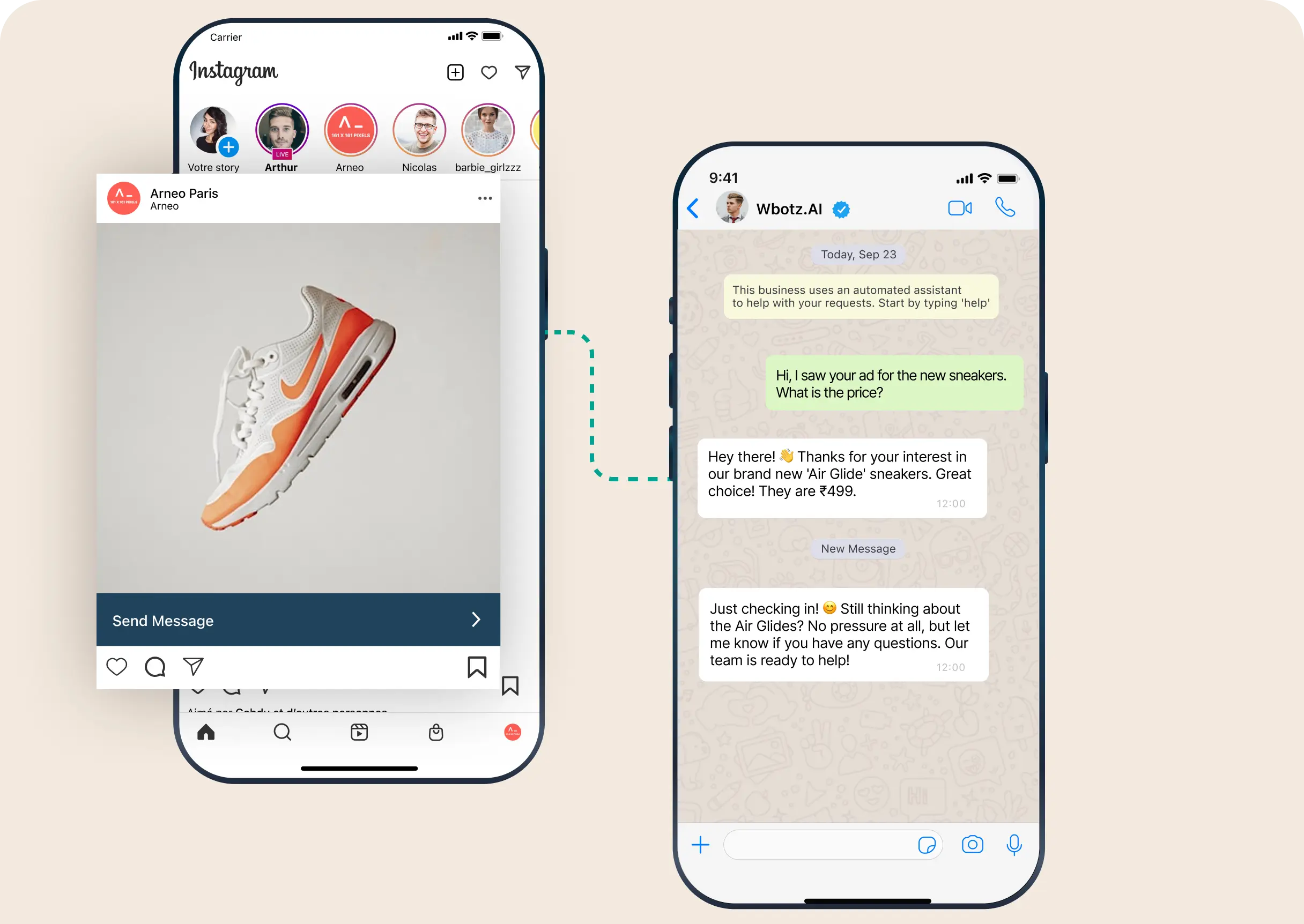 Automated WhatsApp messages remind shoppers about unfinished purchases, offering incentives and support to bring them back and complete their orders.