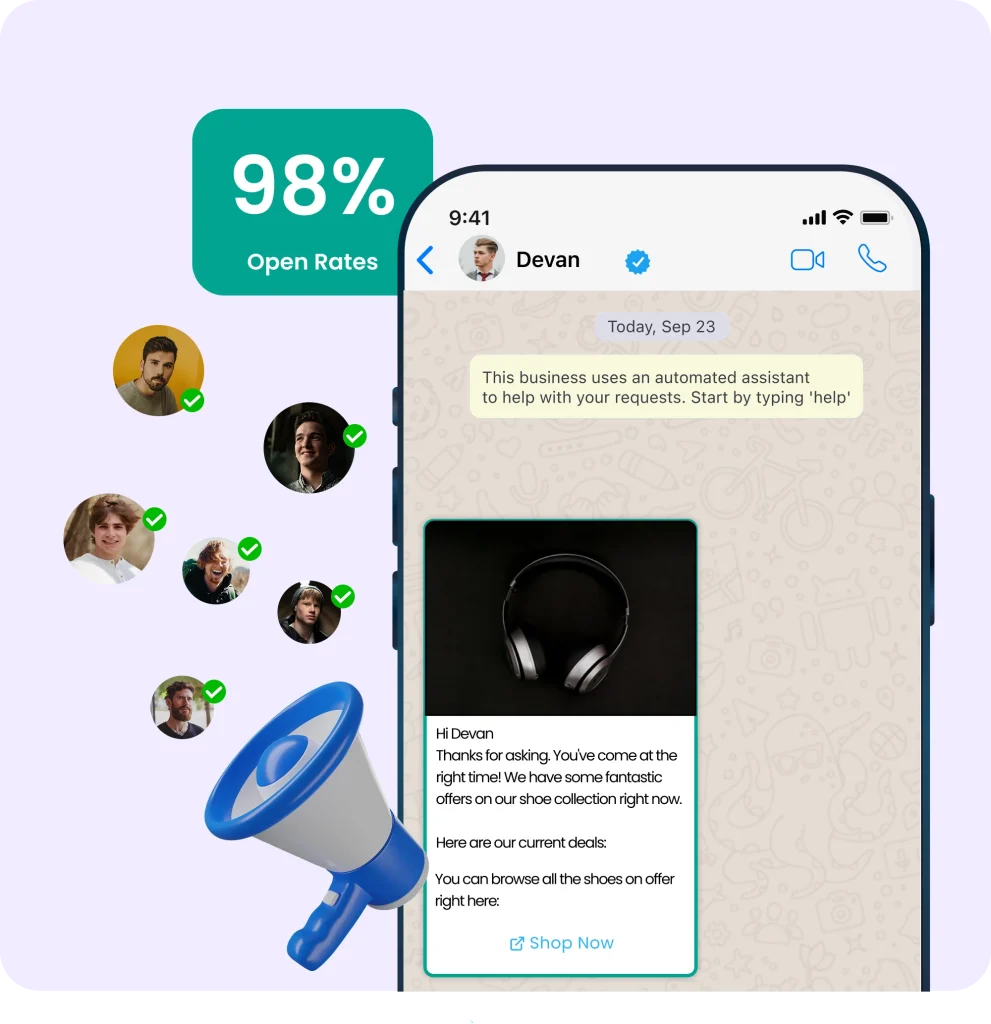 WhatsApp messages enjoy exceptionally high open rates (up to 98%), significantly outperforming traditional email or SMS marketing.