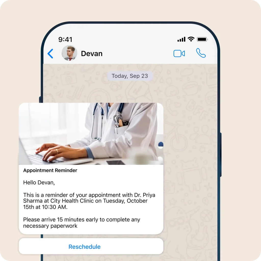 Deliver time-sensitive notifications that keep customers informed and confident using official WhatsApp transactional messages. Whether it’s a payment confirmation, order update, or appointment reminder, these real-time alerts provide transparency, reduce support inquiries, and boost trust—all on the world’s most used messaging app.